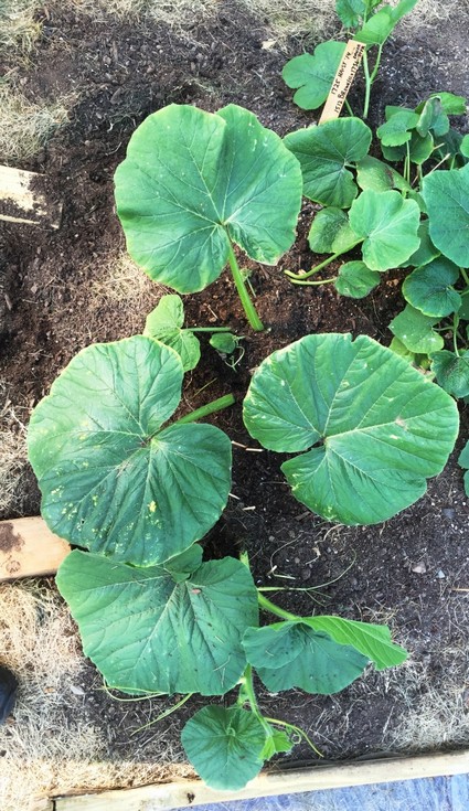 1725 Haist has now reached the limits of the cold frame, day 35 since germination. Vine buried today - will be hard to shade from hot sun without the frame but expect only clouds next few days. Going away over weekend and plan to buy bigger PVC hoop stuff for burlap support upon return. Ground temp up to 76 deg.