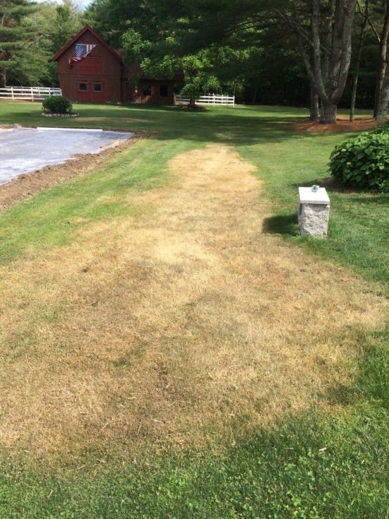 | Here is what happens when you pull the plastic out over an area of the lawn for 15 minutes or so... Oops! That shows how hot it gets under the plastic. |  |  |