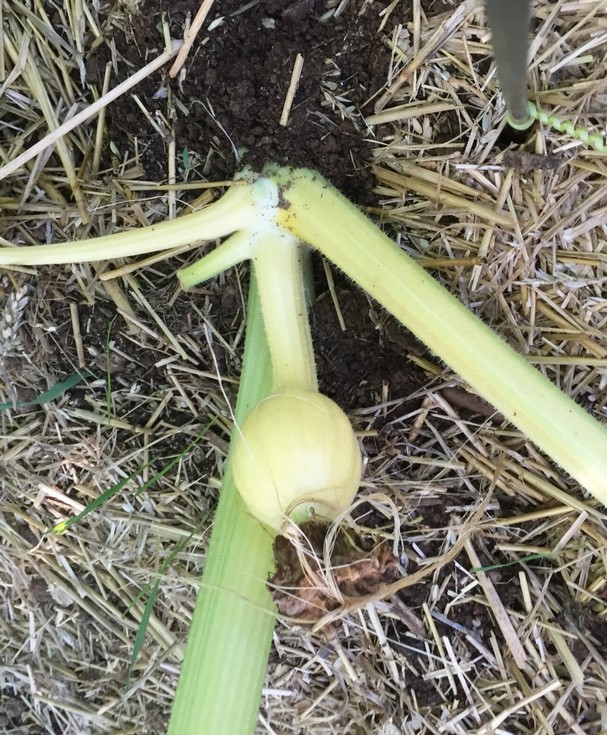 Day 4 after pollination of the 1725Haist. Flower tied but not yet fallen off. Fruit looks good. Turned the vine outward to let it room to grow.