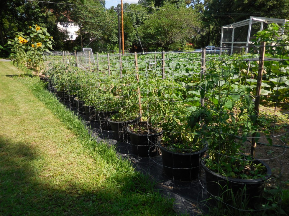 Tomatoes in the pots doing well and sucking down a lot of water.