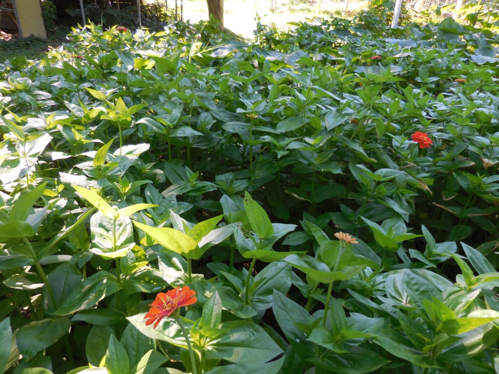 Zinnia's survived the Japanese Beetle attack and are starting to bloom. The beetles attack whether there is poison or not. Surely they regret the poison later, but it did not phase their 2 day attack.