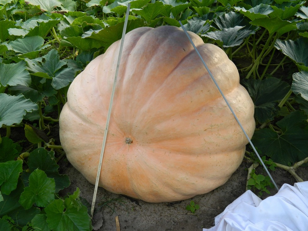 1818.5 Bryson, 42 DAP on August 1, 709# gaining 23# per day last 4 days. Last year on Aug 1 my personal best was day 30, 342#. I hope this one holds up. The 1965 Brandt showed no growth at all the last 4 days :( I guess I need to try for another one on this and a 60 day pumpkin by October. But in the past plants this big usually blow up new fruit. On the positive side the 962 grew 20# per day with no stump and a big secondary removed. If nothing else goes wrong I hope it makes 1000#. Other good news, our best watermelon is gaining 2# per day, will be a new personal best in 3 weeks at this pace. But we have a new batch of baby rabbits. They have become a plague and the electric fence won't stop them.
