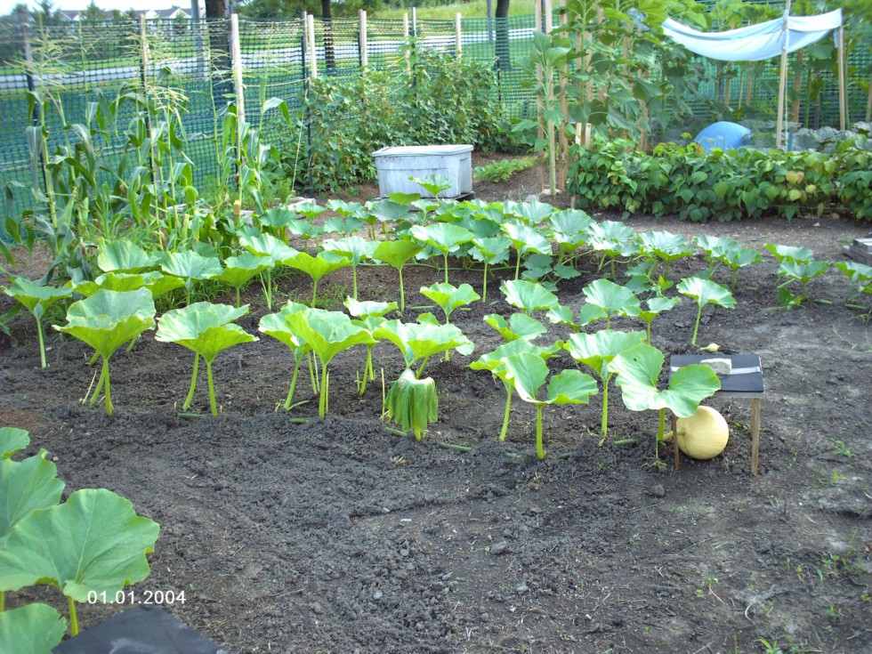 Peanut pumpkin - treating for SVB damage. I was able to save main vine fruits, but still noticing a few issues. Corn/weeds beyond removed on 08.02.2016. In background my 1049 Swain covered with blue wet towel.