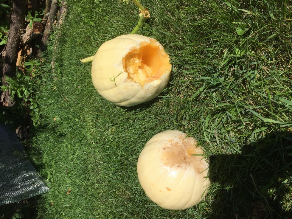 First Fatalities - 2 starters, on 2 different vines, found with flower end rot this morning - the smaller with discolored shell that I could easily stick my finger through and the other was wide open and rotten - slime exuded when I cut it off to throw away - yuk. Suspicious that I fertilized with calcium nitrate yesterday. Response: Heavy irrigation today. The solution to pollution is dilution. Hope this isn't a harbinger of what's to come. Biggest pumpkin is on the 1531 Fulk - est 215 lbs. The 1725 Haist has 6 fruits totaling 540 lbs (40-145)and each are growing about 2-3" in circumference/day. Shoulda picked that vine to grow the big boy. Assuming the 1969 would provide the fruit to take to the weigh in may have been a mistake - best I have there is a 50 pounder - all the female blossoms were very later and far down the vine. This sport promotes too much anxiety.