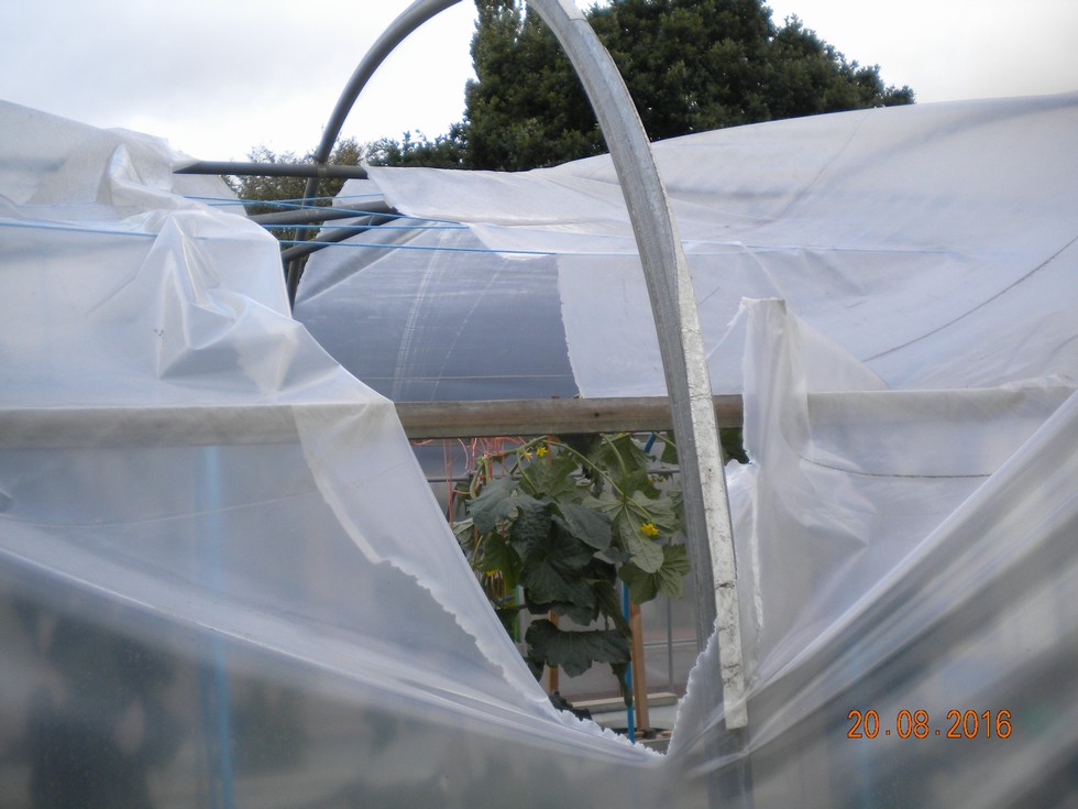 Severe gale yesterday ripped my high tunnel roof sheet almost in two. Still to windy to try and fit a temp. sheet over. It would be over my best heavy Cucumber which is taking a battering.