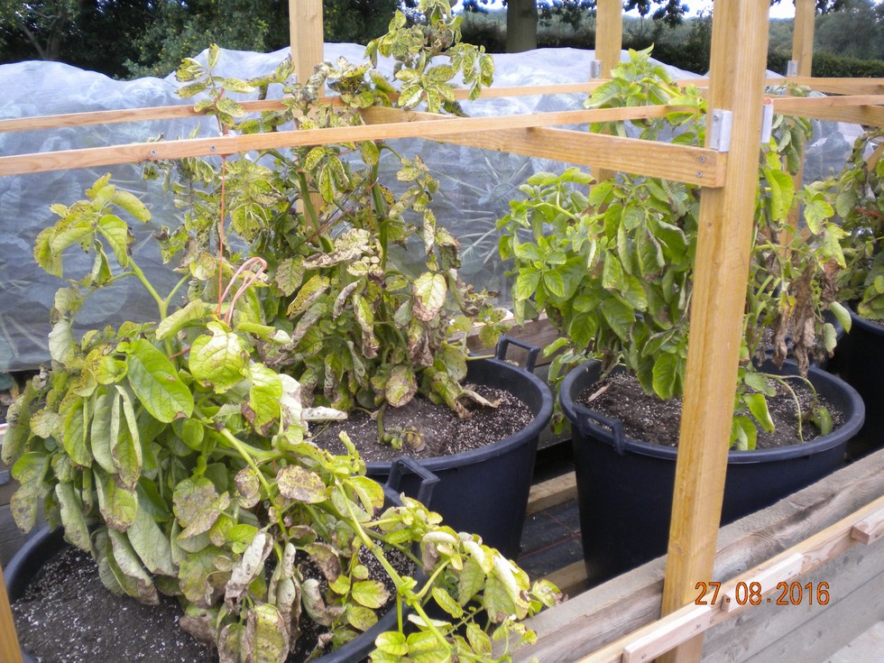 Giant Potato tops looking tired, still watering and will be lifting in two weeks - hope I find something large under the soil.