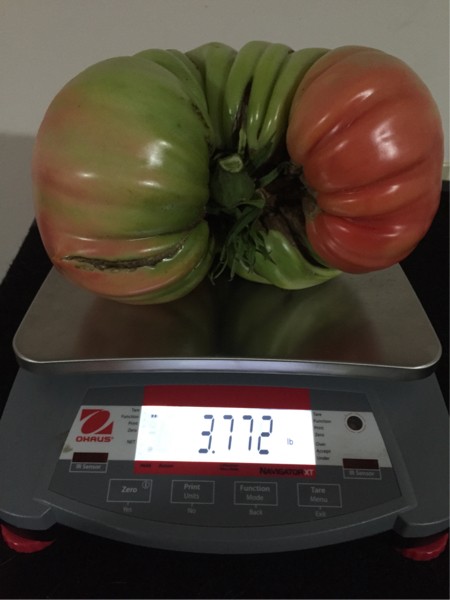 Once again a new personal best tomato. Getting closer to my 4 pound goal. This one was grown off from the wixom slammer. I thought it might have been heavier but after picking it I noticed a big cavity on the right side. It wasnt rotted just an empty space. Still tomatoes yet to weigh.
