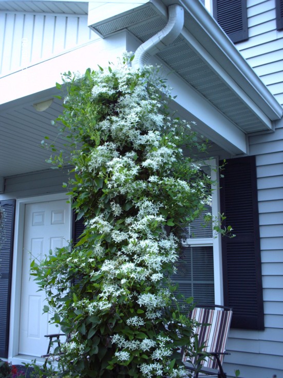 Here are my climbing flowers out front. I am so happy now that my son, Christopher, made a strong trellis for the heavy vines. This year, the storms will not take the plant down!! And, I am able to enjoy the blooms for the first time!!!! Where is the rain???????????????????