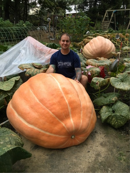 Got some new estimates this evening. 504 on the one in the foreground and 599 on the one in the back. Oh so close to 600#. Color and skin on big one is getting pretty cruddy looking. A sign that growth is coming to a halt? Found three spots of rot on the smaller pumpkins main vine so I cut it out and added another fan to try and dry it out. We'll see.