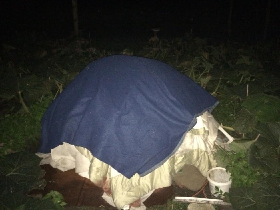 | In the low 40's again last night, so I added a blanket to the remaining pumpkins. Photo is of paps 2009.  Mice have been taking the "bait" so check in and around your pumpkins and place bait down. I have been getting lots of emails about water this time of the year and how much to water.  We have cut back the water by about 50% simply because the plant and pumpkin do not require as much with temps in the 70's.  We still water about every other day but once again with smaller amounts and yes we are still spoon feeding our fertilizer program. |  |  |