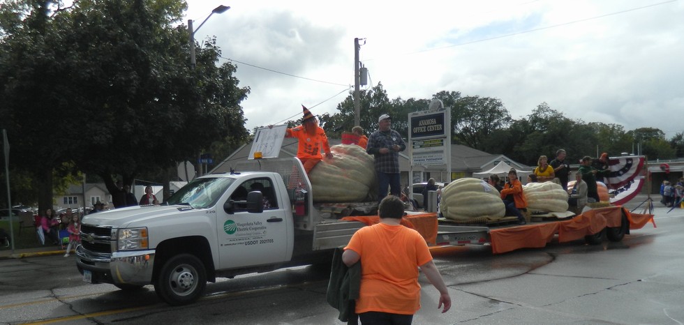 The top 4 pumpkin growers got to ride through town in the parade. I'm sure Pete and Alba Caspers got candy throwing tips from the others, who have a lot of experience with that. I missed the float by just one place, so I have to work even harder next year.