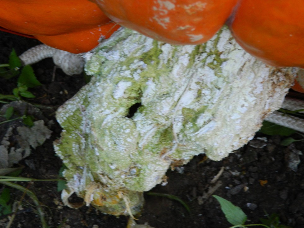 There is rain in the forecast for Tuesday night and Wednesday, and possibly heavy rain for Thursday, so we decided to load the pumpkins while we could. The hill to get out of the garden is just too steep if it gets wet. The smaller 1047.5 pumpkin has great color, but the ugliest stem I have ever seen.