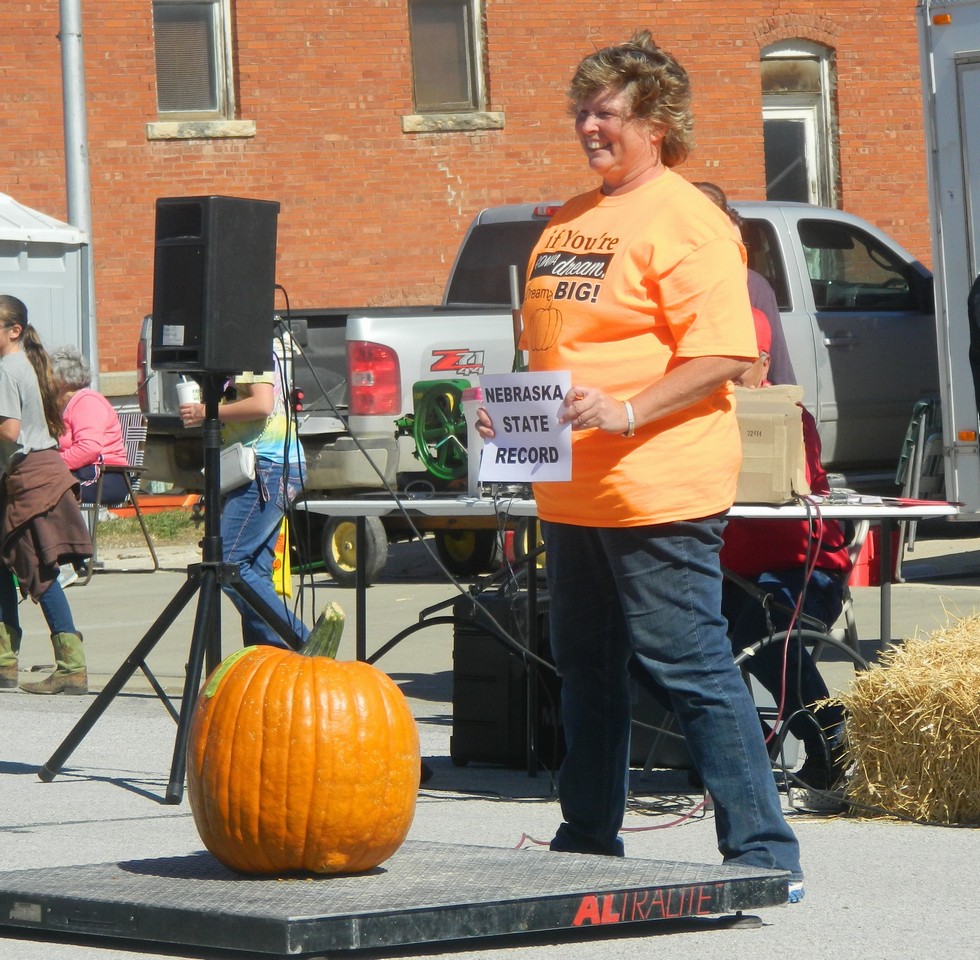 Harvest Bash site coordinator Nanette Hatfield set the Nebraska state record for field pumpkin and took 2nd place.