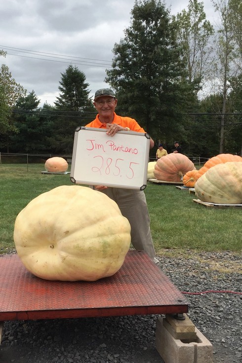 End of Season - Never grew a monster - biggest 450 from the 1531Fulk, rotted before the DelVal weigh-off - Nuts. Best I could do was a 285 just to have something to weigh and still got a round of sympathy applause (because, being the smallest it was the first weighed) Lost to the winner by 1,510 lbs. The 1725Haist produced 5 beautiful, symmetrical simultaneous fruits of 250-285lbs which are currently on display outside my wife's business. Shoulda used that seed for the big one.
