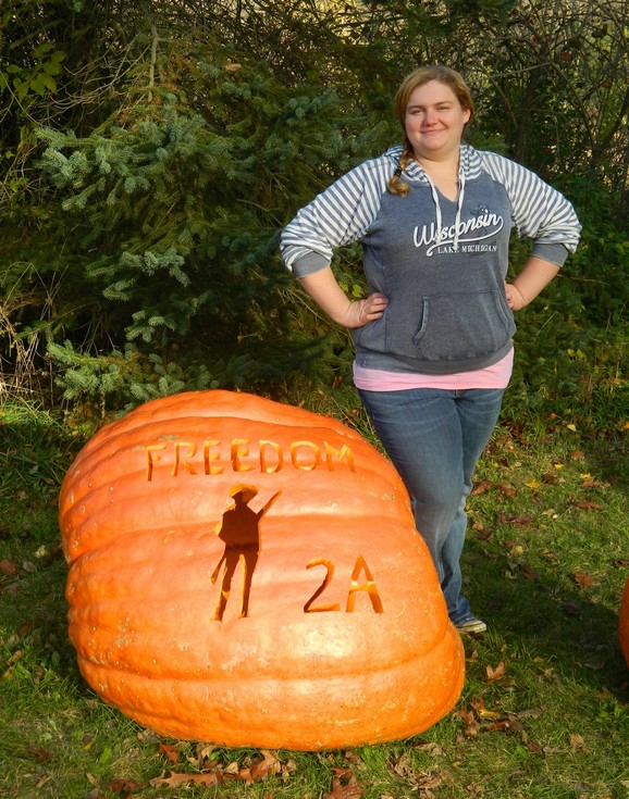 United States Concealed Carry Association is having a pro 2nd amendment pumpkin carving contest. I don't have great carving skills so I tried to make up for that with size. Jacob's 559 had a good flat side for carving.