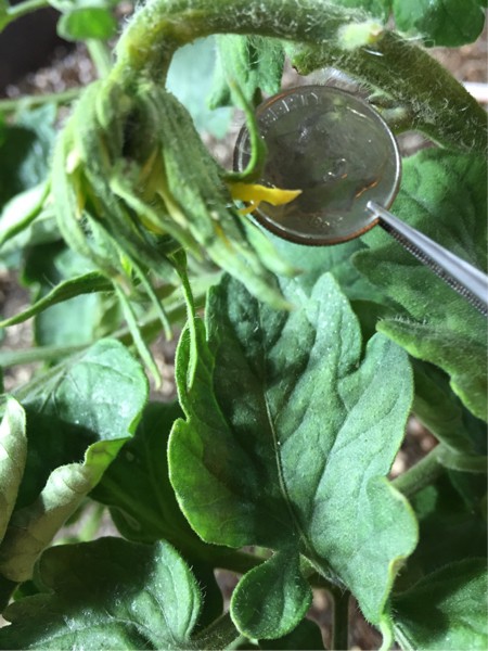 First of my winter challenge blossoms is starting to open. It is grown from my 3.71 uow from this summer. The 3.71 was grown from a 6.15 Ansems. This would have been my pb tomato by far without grower error. I snapped it from the vine while measuring when it was still gaining about 1/4 inch per day. It is outperforming the other plants I currently have growing now. I like the size of the first truss blossom with a slight doubled ribbon going into it. Vegibee action now for the next few days...have to get this one to set.