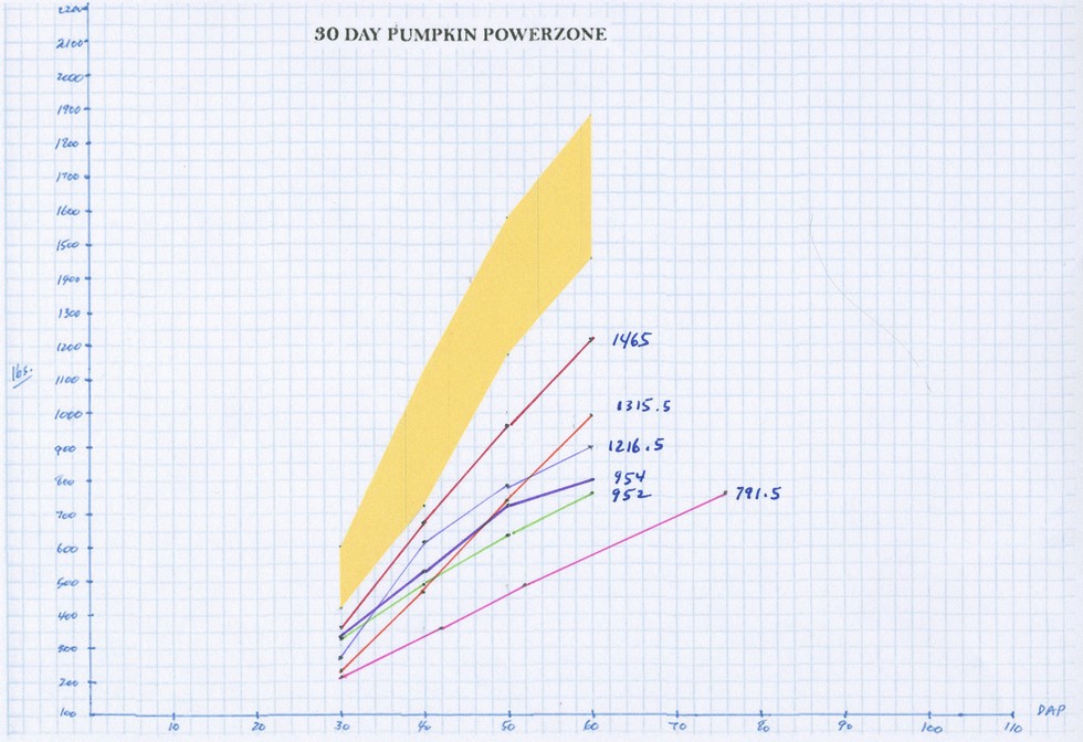 The painful truth is that I have never grown a pumpkin that at any time has hit the zone. That's the bad. The good news is that I am seeing progress and getting closer. I will begin now to think about Day 30. Why have my pumpkins not been big enough? Spring amendments? Plant size? Water? Nutrients? Biologics? All things to improve.