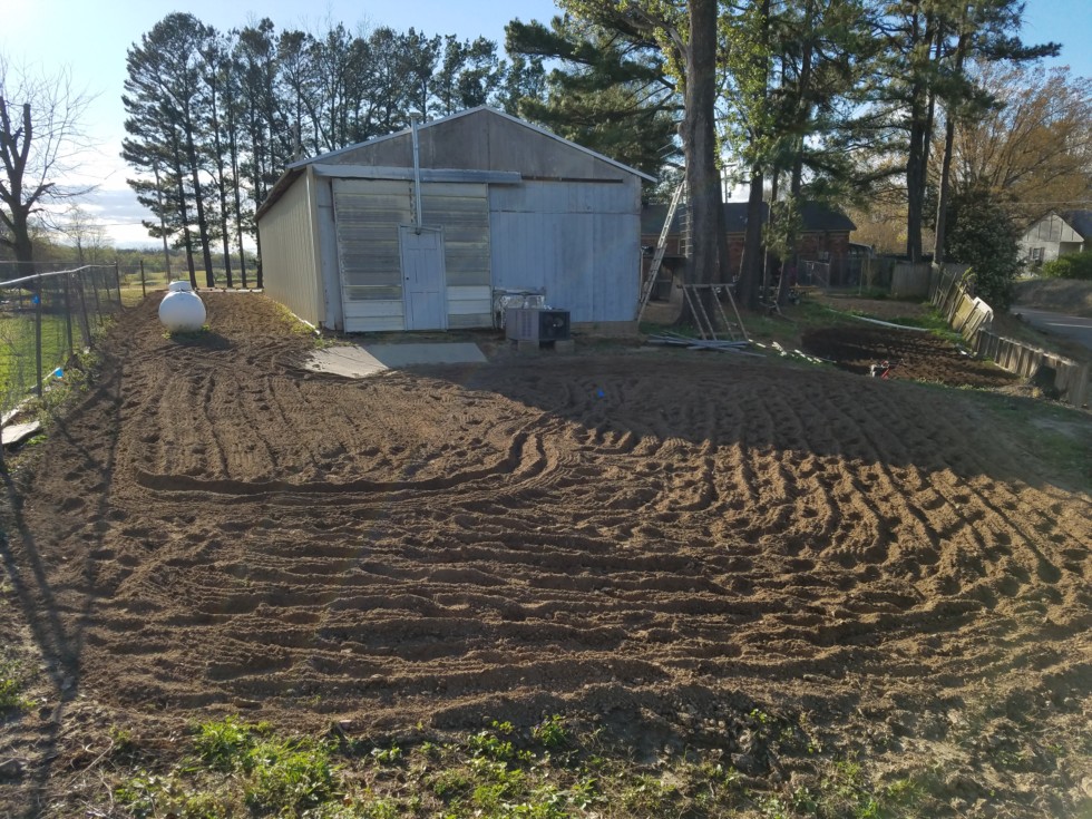 Got the melon spot B, the garden, and kin spots all tilled and amendments added... gonna til one more time on spot B (center) and put down the weed fabric there this weekend...