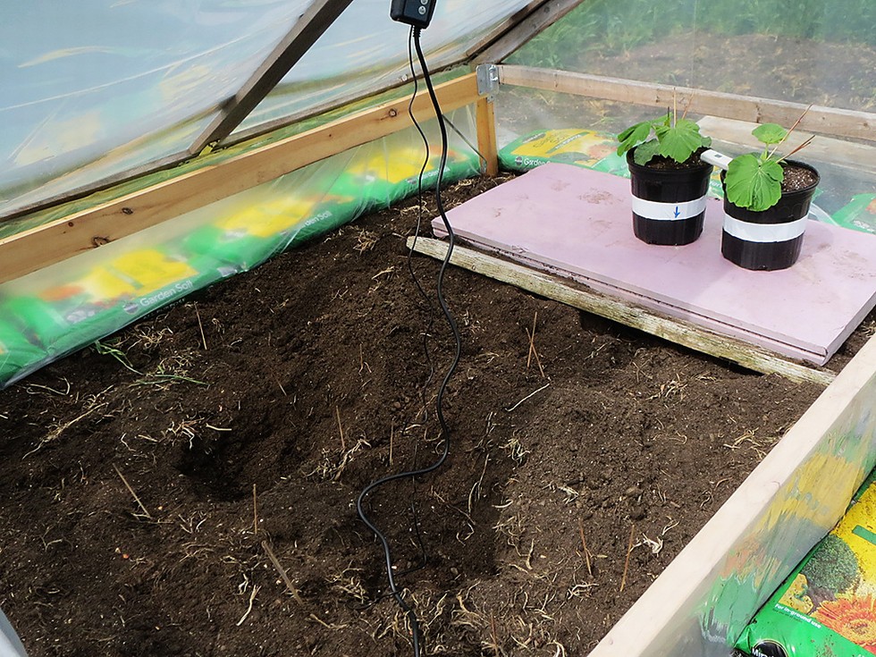 Warming soil and gradually getting the seedlings introduced to their new greenhouses. Spending a few hours a day here.