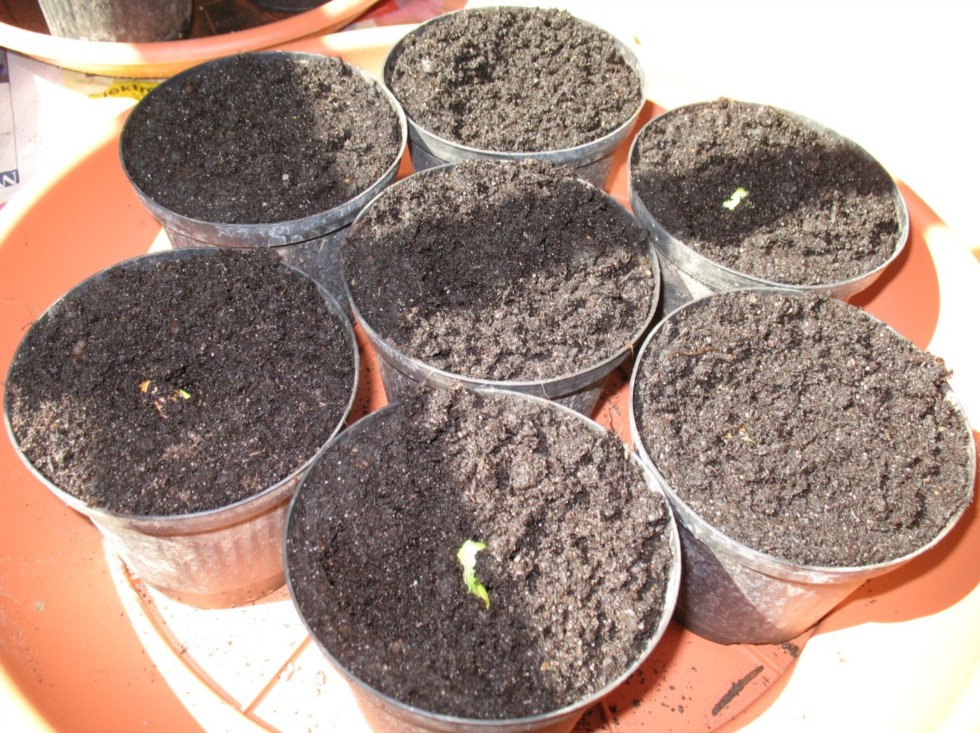 Three of them are looking out of the soil. Today, early afternoon.