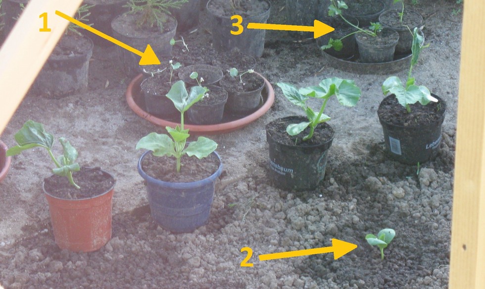 Here you can see the four backup plants of the 653 Rupf 2011 The 2. true leave looks normal on these plants (when i remember right).