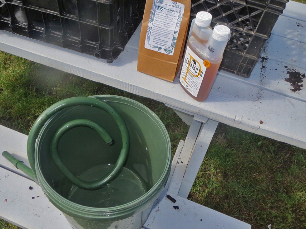 Brewed 5 gallons of compost tea overnight. Diluted 1:1 with rainwater so each plant got 5 gallons this morning. The ugly thing about brewing tea for me is cleaning the brewer when I'm done. I show this KIS brewer because it is really easy to clean.
