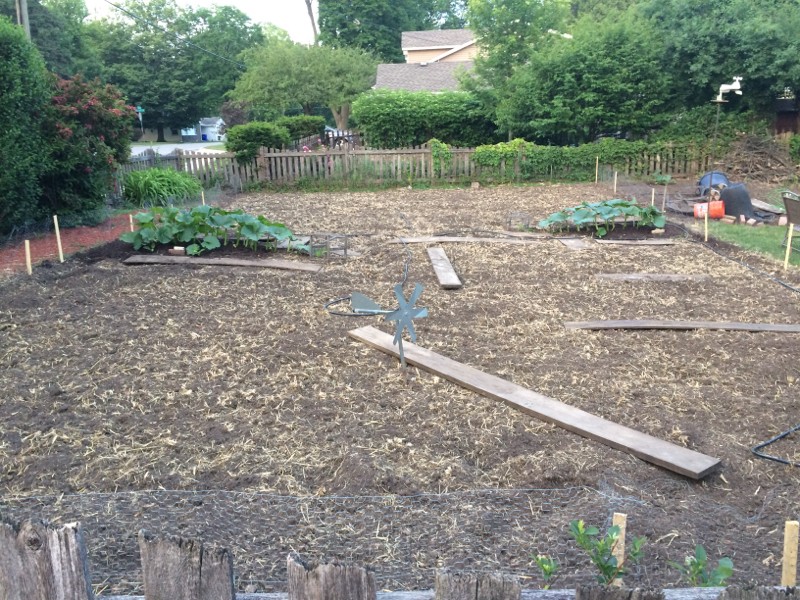 Patch is tilled finally. 1790 Wallace on the left and 1861 Adkins on the right. No sunflowers yet due to hungry rabbits. I can't grow much that isn't surrounded by chicken wire here