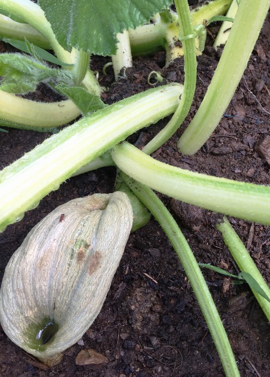 2624 stem that splayed open a few days after transplanting. Grown tough and stable. Decided to bury it today on the advice of another grower a couple of weeks ago. Also bought more Aluminet Shade Cloth to extend the wind break of the fence. Ecologic Technologies. Using 50% shade. Comes in 14� widths by any length. Cut the 14� in 3rds for almost 5� high wind break fencing. Very tough stuff � won�t rip. Deer won�t come anywhere near this stuff; ground hogs are indifferent. Trouble is that they have a minimum order size of $100 plus shipping ($18). That�s 14� x 25�. Well, it�s a once and done purchase. Disregard obvious typos on prior entry.