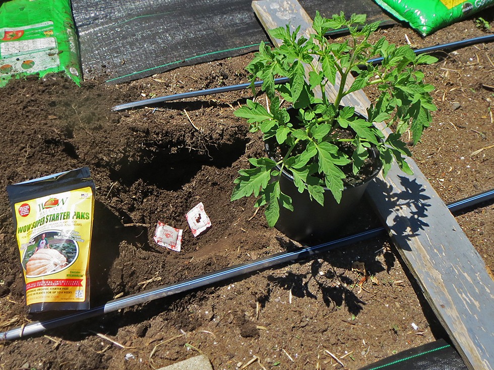 Got tomatoes in the ground today. 2 WOW packs in each hole.