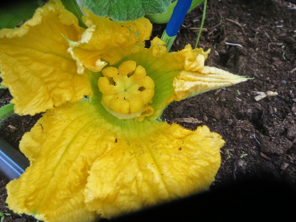 Nice looking female opened this morning in a nice spot on the 2009. A little over 16 feet out on the main vine. Plenty of plant behind this one. 19 sides. This is the first female on the main vine for this plant. Lots of 2145 pollen around this morning so here is the 2009 x 2145. Looks like mother nature will cooperate with mid 70's temps today. Will try hard to make this one work. Fingers crossed.