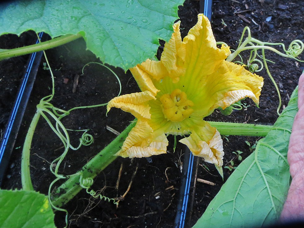 Nice way to start July. 2145 4-lober opened this morning. Pollinated with 4 hearty 2009 males. So 2145x2009 just short of 18 feet on the main vine. Weather should cooperate today.