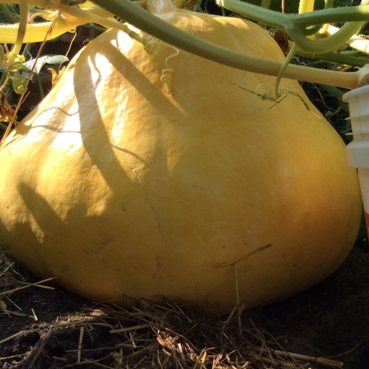 1114.5 Minor about 25 DAP about 100 lbs. Nice orange color. Certainly not going to tip over... I don't know what to call this shape it's way beyond pear shaped... but it could make a funny face if it makes it to Halloween.