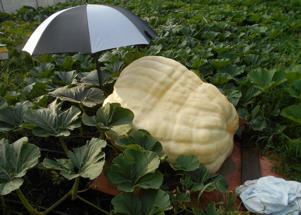 Seems like all season I have taken my pictures of this pumpkin on the side, so I am just going to continue now as it shows the lumps and bumps this pumpkin has. I was hoping for a slightly long shape with orange color when I planted this seed, but it seems to be favoring white color currently, but there is still time for some change. There is a fold that is starting to develop so time will tell if this becomes just a visual defect or the reason for its demise.