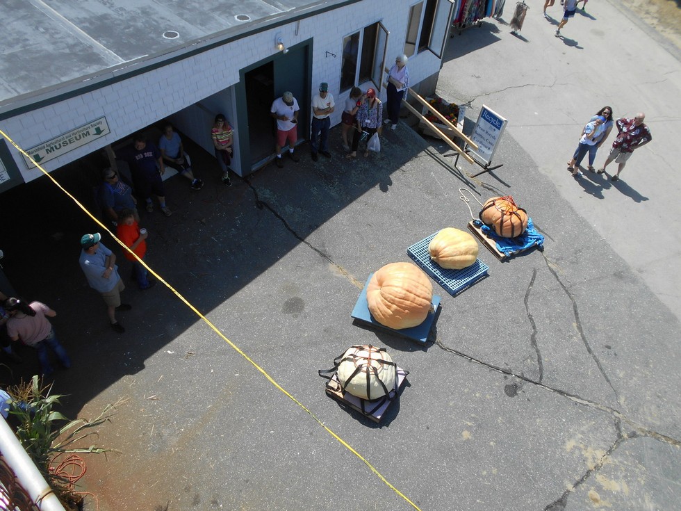 Here are all of the entries for the Marshfield Fair held in Marshfield, Massachusetts. It was going to be a very competitive second place and it made the task of trying to weigh from least to greatest quite a challenge. The growers knew every pound was going to be critical to separate the second, third and fourth place pumpkins which made for some excitement.