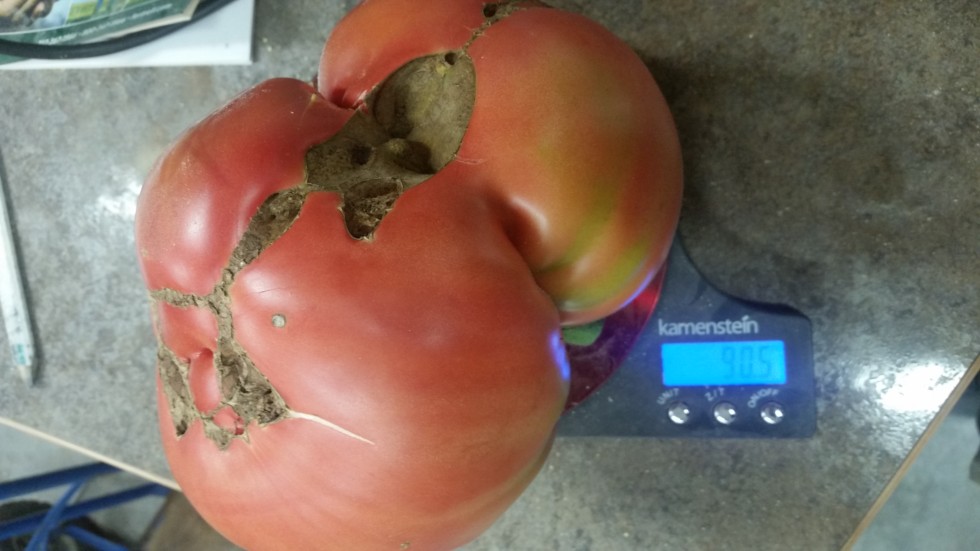Picked all the remaining tomatoes, so the 2017 tomato growing season is finished, all of these last ones were 6 to 7 feet up on the plants, this 5.65 is off of my seed stock grown from the 5.85 boudyo seed, and the multiplier was 58.