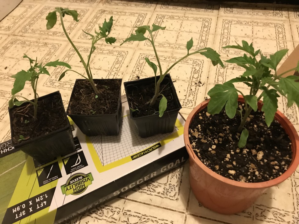 Ok well I think these plants came from one seed line normal ones got potted up to half gallon size (on right). The one next to this never had an apical bud beyond the first leaves. The others found weak side shoots to continue growing but anyhow Anna has nearly 30 good plants so these will probably get composted or left to nature�s whim somewhere. 90 degrees here today btw.
