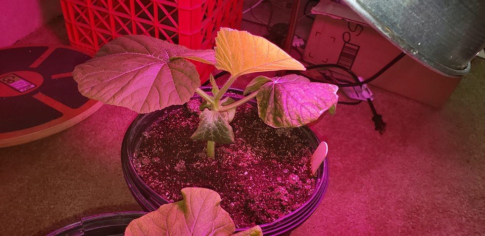 Back on track(fingers crossed). 1733 Wallace will be 2 weeks in 2 gallon pot Friday. Under grow light today, but will be planted by Sunday. Daytime temps in mid 50s bad for pumpkin growth