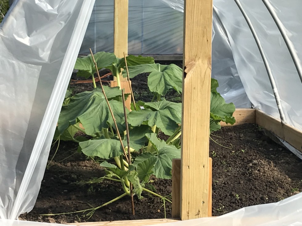 What a difference two weeks and a little sunshine make. All plants main vines are in the six to seven foot range