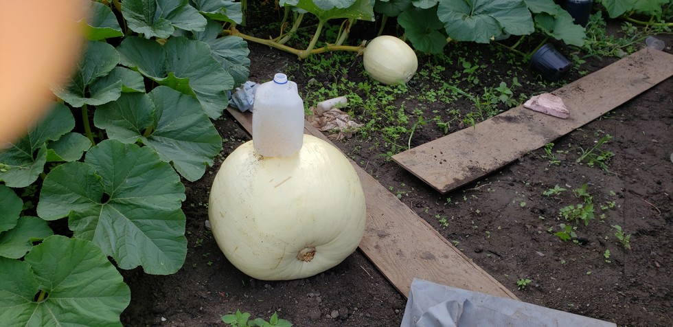 I'm upset after cutting my 18 DAP 1733 Wallace off the vine at 12 feet, but I felt it didn't have enough vines behind it to support decent growth. I'm hoping the 14 DAP fruit at 14 feet will be a better choice, having more energy now that was going to fuel the 18 DAP. Boards, etc. will be put in place this afternoon during the heat of day when vines are more pliable. Now the secondaries are almost all terminated, the tertiary vines and weeds are running rampant. It's always something. First picture is the recently deceased from 12 feet out.