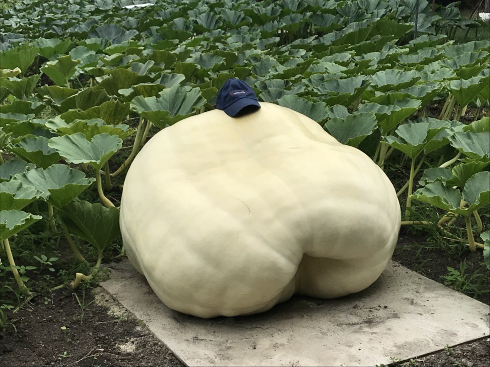 Day 40 2469 Daletas X 2528 Geddes. This homely looking pumpkin came from such a perfect flower. Go figure. At a respectable 314 inches in OTT.