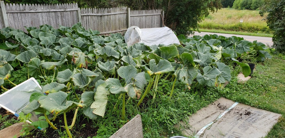 Before and after pruning shots of fair pumpkin plant. I left a couple secondaries before and a couple plus the main after the pumpkin to slow fluid loss.. Loading on Thursday morning. Hopefully, t-storms and rain will be done by then.