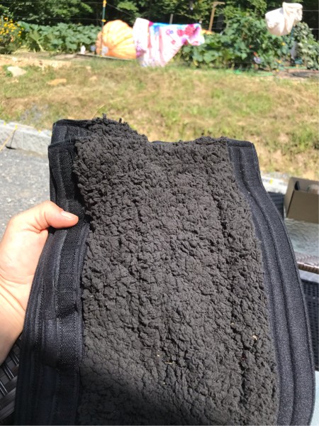 He put faux lambs wool on the outside for a nice soft cushion :)