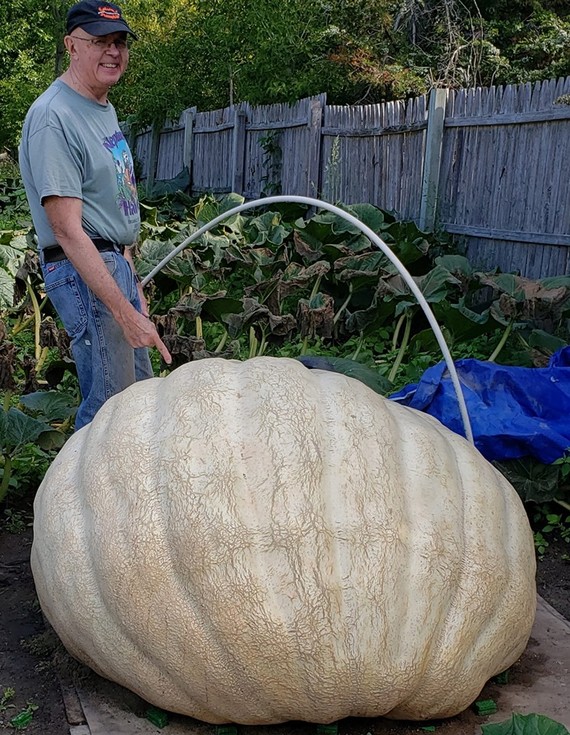 George may have crapped the bed(really). I can't tell if the bad smell is from the pumpkin or rotten leaves that have died from old age. I'll know soon enough. OTT is 358 at 69 days old. Possible estimated 1043 pounds.