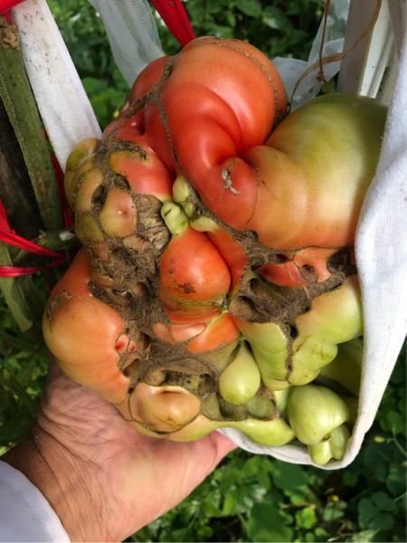 Things are starting to show their age around here. The patch at my moms has been neglected with lots of blight but I did find a nice flashing tomato. And wow did it have junk in the trunk. It�s on my 3.26 Pittston I call it. That seed has been throwing nice Megas for me.