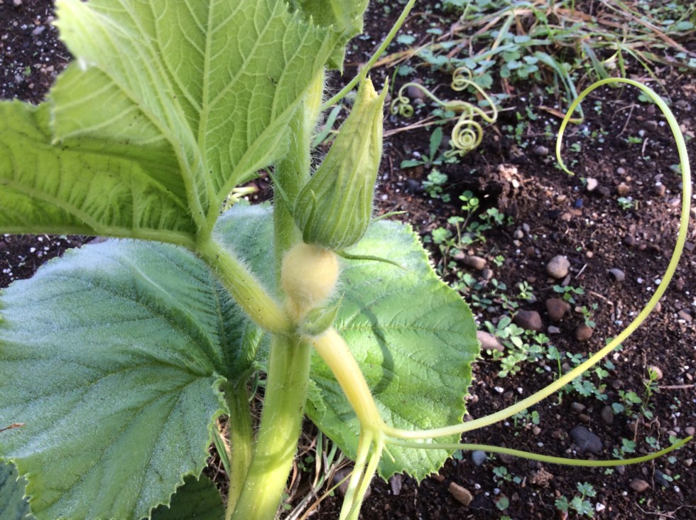 This upper 1043 Chan plant just won�t give up. We still have the main vine and 1 secondary growing, and each vine is still throwing out male and female flowers...these plants continue to amaze us. I wish I had pollinated 2 pumpkins on this plant, I will plan better for next year.