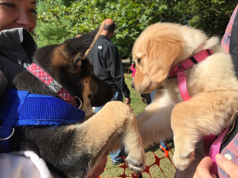There were more dogs there than pumpkins and Maggie made some friends.
