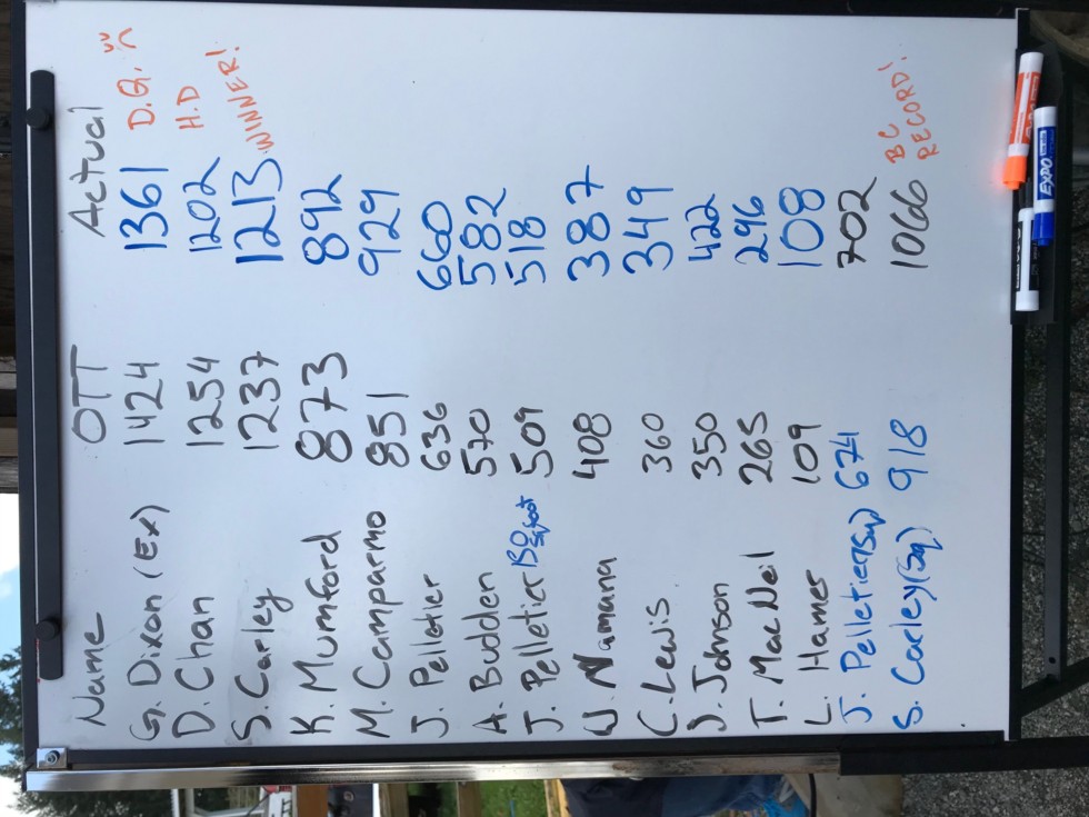 Lots of personal bests and a few records came tumbling down on the weekend. Scott Carley with. 111 lb Field Pumpkin, a new Provincial Record and he also snagged a new Squash Record at 1066 lbs by smashing his old record of 725 lbs. Jeff Pelletier set the pace and got a Provincial Record in the process for his massive bushel gourd at 219 lbs.
