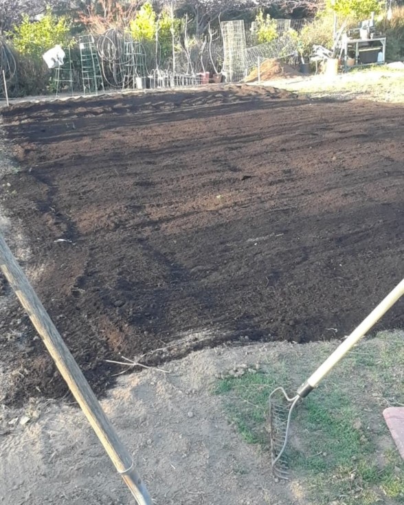 Penryn Garden - February 22 2020 photo - First Garden Prep for my AG garden plot . Raked out 5 yards of Compost over 25lbs of Soil Acidifier to lower my current 8.2 ph levels.