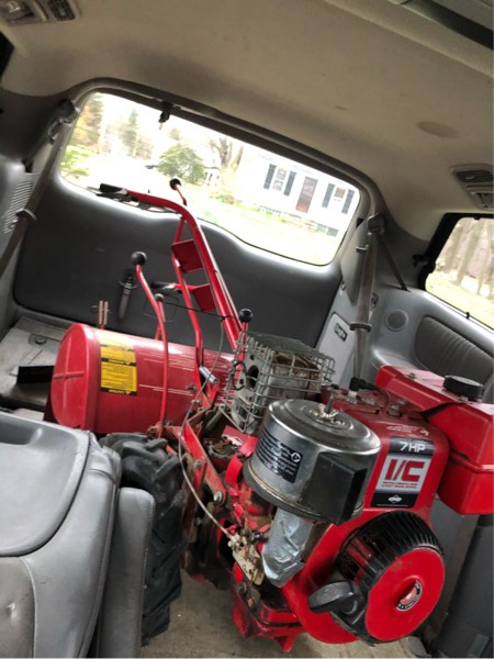 She has been picked up! Bought a Troy bilt tiller for the pumpkin patch! Pretty nice one. Going to help a lot! Can�t wait to use it