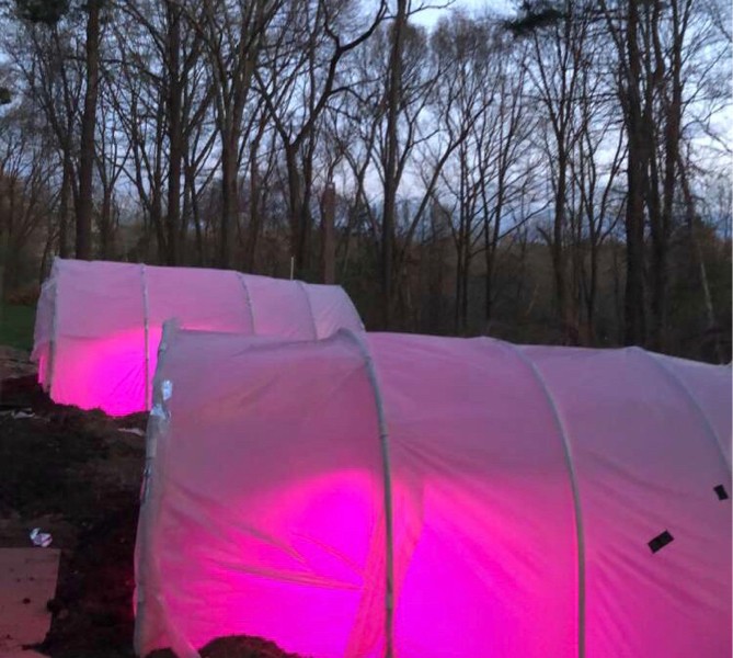 Growing lights are on. No more warm weather. Gone for the next week or two.. that means low temps in the 30s and highs only in the 50s! Heater keeps the hoop about 10-15 degrees higher than outside temps. That means if it�s 35 out it�s about 45-50 in the hoop. Not the best in my opinion. I do want to keep the plants warmer. Tomorrow I�m going to put something over the plants to trap the heat in more. Whatever it takes!
